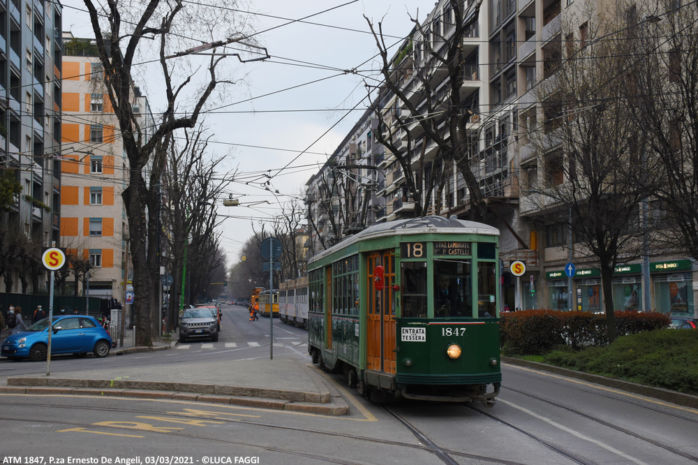 La vettura storica 1847, serie 1500, ha effettuato un servizio speciale riservato per le riprese del film “Carla“, diretto da Emanuele Imbucci, con Alessandra Mastronardi e Stefano Rossi Giordani tra i protagonisti. La pellicola, prevista in proiezione entro l’anno corrente, narra autobiograficamente la vita della grande ballerina meneghina Carla Fracci, il cui padre fu appunto un tranviere dell’azienda municipale milanese. Piazza della Scala, set principale delle sequenze con protagonista la motrice sopra citata, è stata arredata con elementi (arredi urbani ed autoveicoli) tipici dell’ambientazione della Milano d’epoca, sposandosi, con molta licenza cinematografica, in modo coerente con le comparse e gli attori in abiti signorili e distinti.