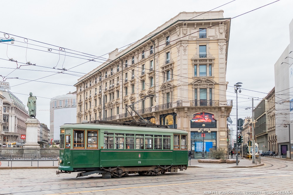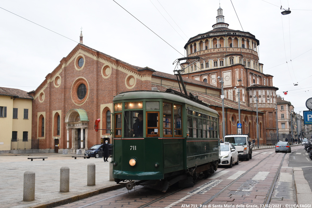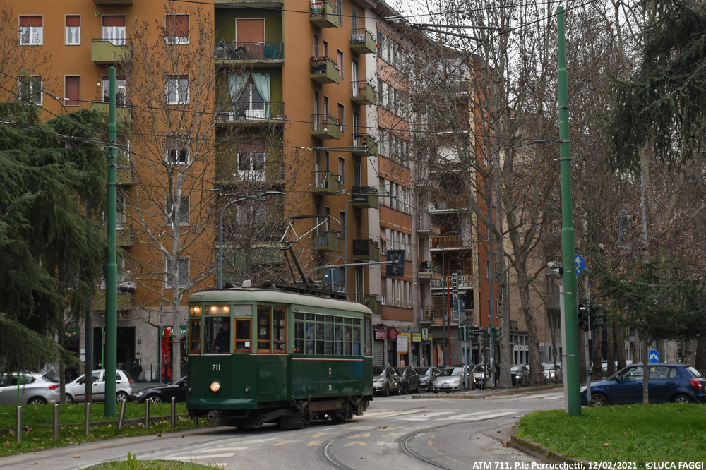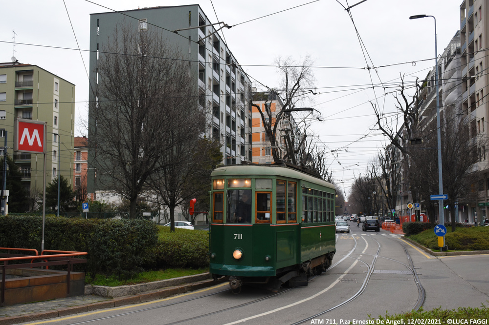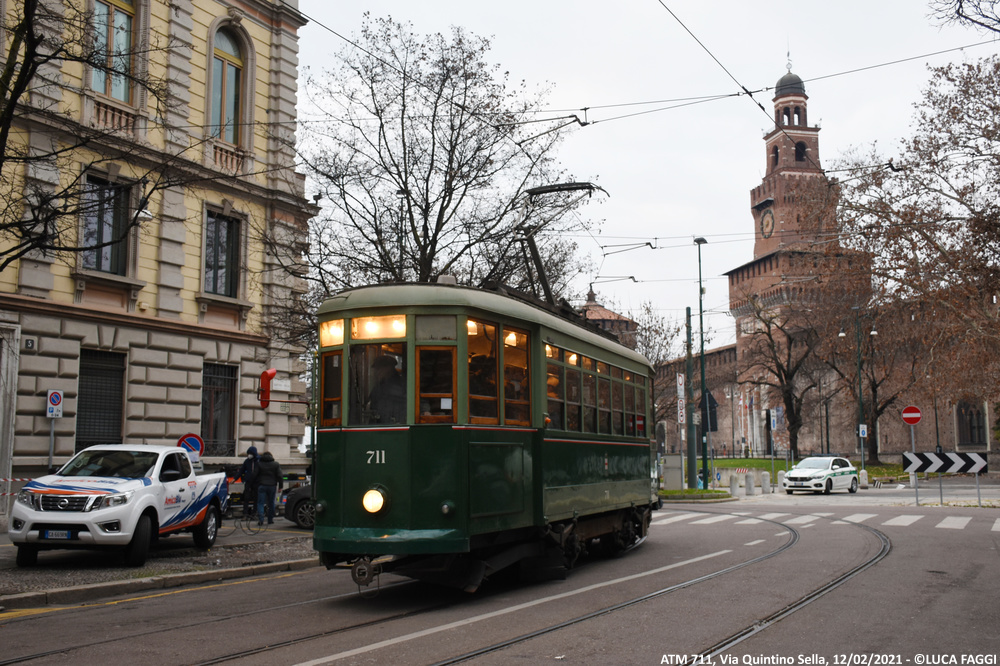 A seguito del trasferimento trainato dal deposito Precotto al deposito Baggio il precedente 5 agosto 2020, la motrice 711 è stata impiegata per comparire in alcune scene a sfondo cittadino sul set del film “I Fratelli De Filippo“, diretto dal regista Sergio Rubini ed incentrato sulla vita di Peppino, Titina ed Eduardo De Filippo. Giunta in Piazza Castello la mattina del 12 febbraio 2021, tra la foschia della giornata invernale ed un sole nascosto dalla magia del grigiore meneghino, è rimasta coinvolta nelle sequenze che la vedono immortalata esternamente ed internamente in movimento tra Foro Buonaparte, Cairoli e la piazza dove capeggia la storica fortezza. Le riprese iniziate alle prime luci dell’alba, si sono concluse verso le 10:30 quando la vettura è poi rientrata autonomamente al deposito Baggio.