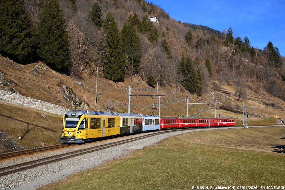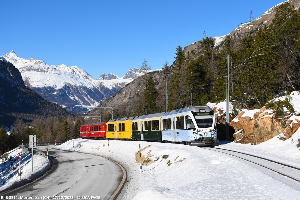 L’elettrotreno 3514 nel dicembre 2023 è stato riverniciato in una livrea speciale per ogni cassa, gli elementi con cabina di guida nella colorazione storica Chur-Arosa e Berninabahn, l’elemento centrale in colorazione storica RhB.