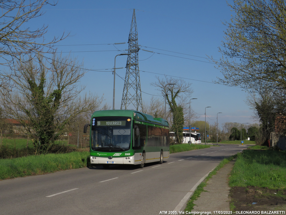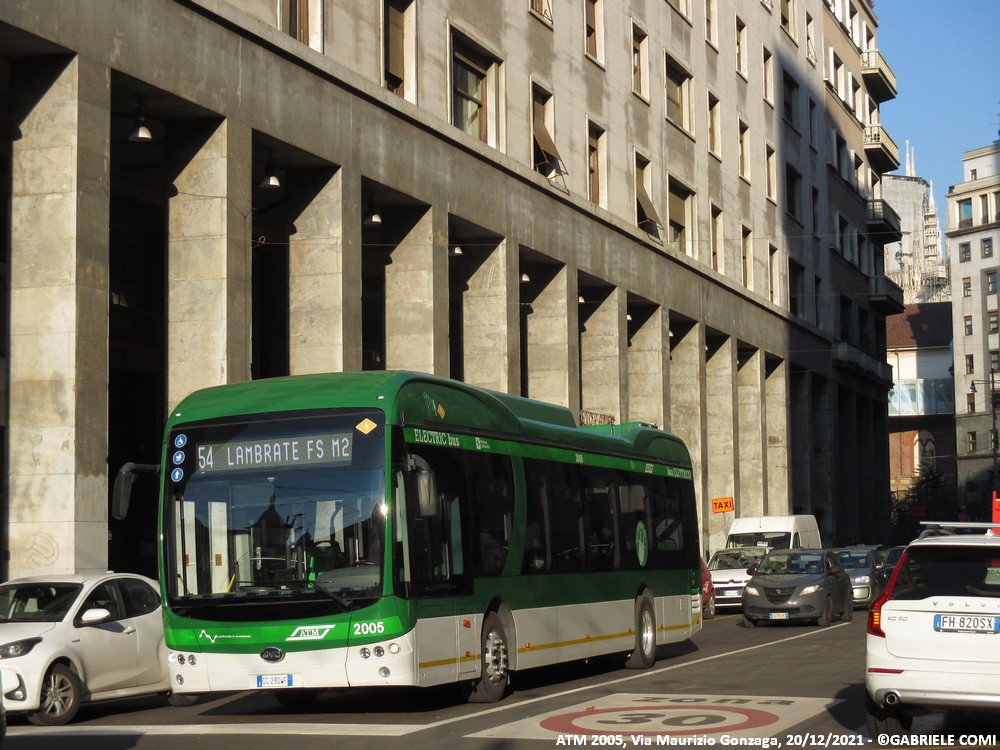 Immatricolato per la prima volta nei Paesi Bassi il 06/06/2019 il BYD K9UB è stato allestito per conto di ATM Milano in un’officina a San Giuliano (MI) dove ha ricevuto la livrea ATM e indicatori di direzione bianchi ricevendo il numero di servizio 2005. Durante i mesi trascorsi nell’hinterland meneghino ha anche svolto numerosi collaudi con targa prova e 3 agosto 2021 è stato consegnato al deposito di San Donato.