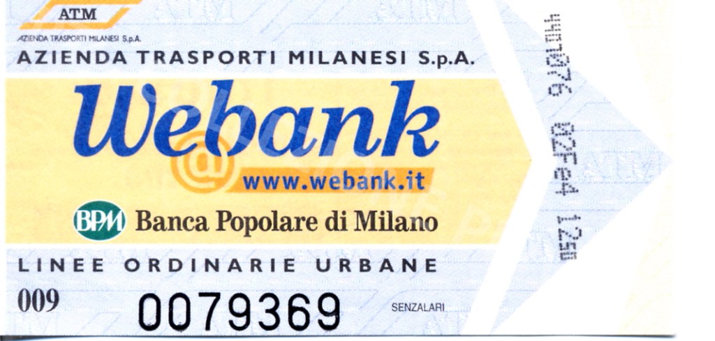Biglietto “Webank” scritta blu su sfondo giallo – fronte Biglietto “Webank” scritta blu su sfondo giallo – retro[Collezione privata Grifalk]