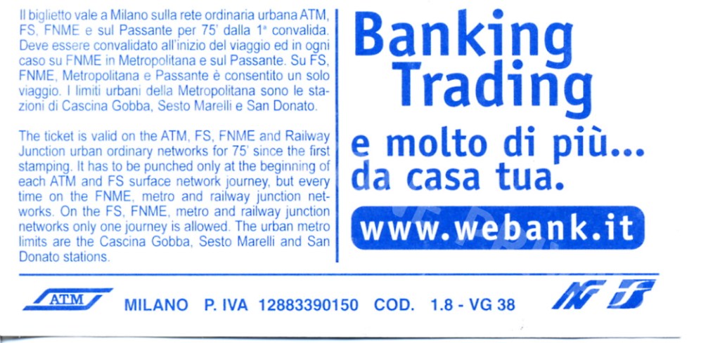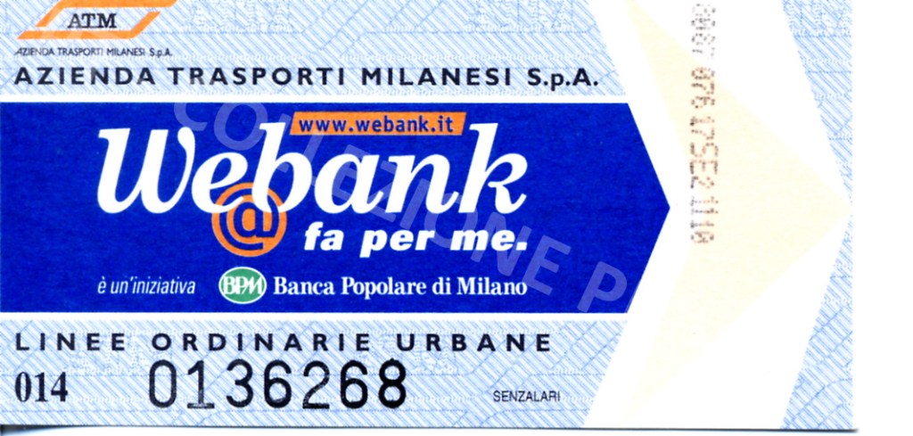 Biglietto “Webank” scritta bianca su sfondo blu – fronte Biglietto “Webank” scritta bianca su sfondo blu – retro[Collezione privata Grifalk]