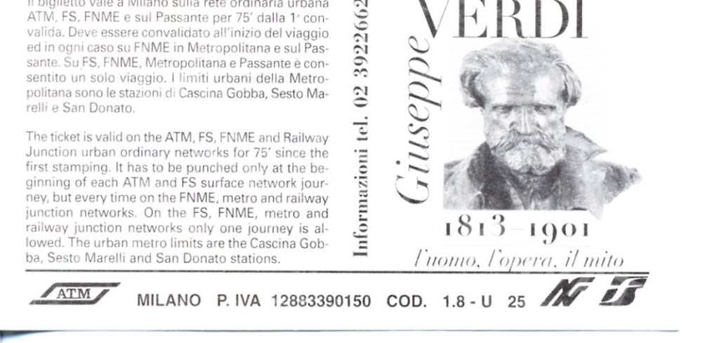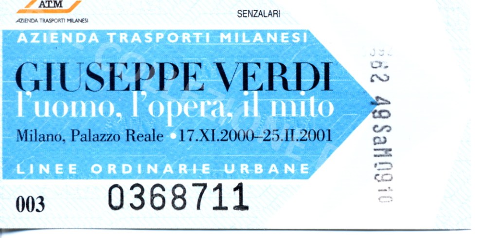 Biglietto “Giuseppe Verdi – l’uomo, l’opera, il mito” – fronte Biglietto “Giuseppe Verdi – l’uomo, l’opera, il mito” – retro[Collezione privata Grifalk]