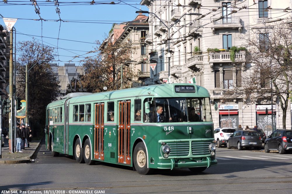 La vettura n° 548 è stata costruita nel 1959. Nel novembre 1981 viene sottoposta a revisione generale presso le officine di viale Molise: vengono aggiornati alcuni impianti, scompare l’incastellatura del bigliettaio in favore delle più moderne obliteratrici. In questa occasione abbandona la livrea a due toni di verde per vestire la sgargiante livrea arancio ministeriale. Nel 1996 conclude il servizio di linea e nel 2008 viene restaurata e riportata allo stato di origine.