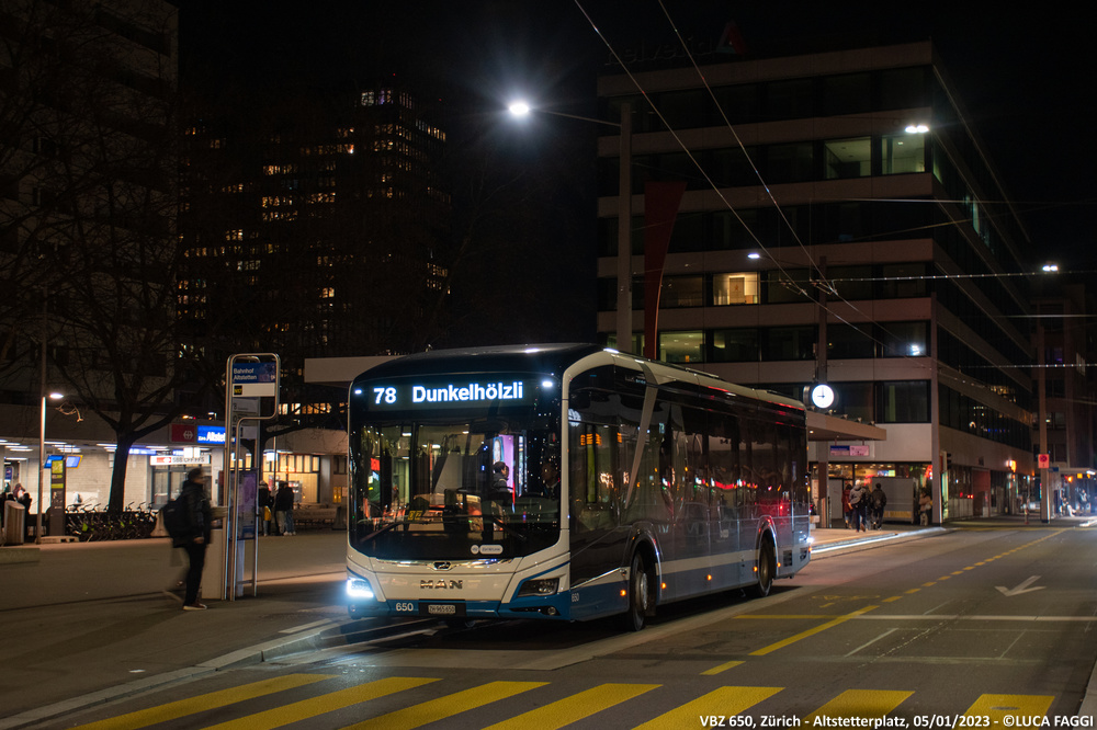 MAN Lion’s City 12 E N° SERVIZIO: 636-650 ANNI DI COSTRUZIONE: 2022 LUNGHEZZA: 12,20 m MOTORE: elettrico NUMERO DI POSTI A SEDERE: 67 (31 seduti, 36 in piedi) VBZ 649 VBZ 649 – 2 VBZ 649- 3 VBZ 650 VBZ 650 – 2