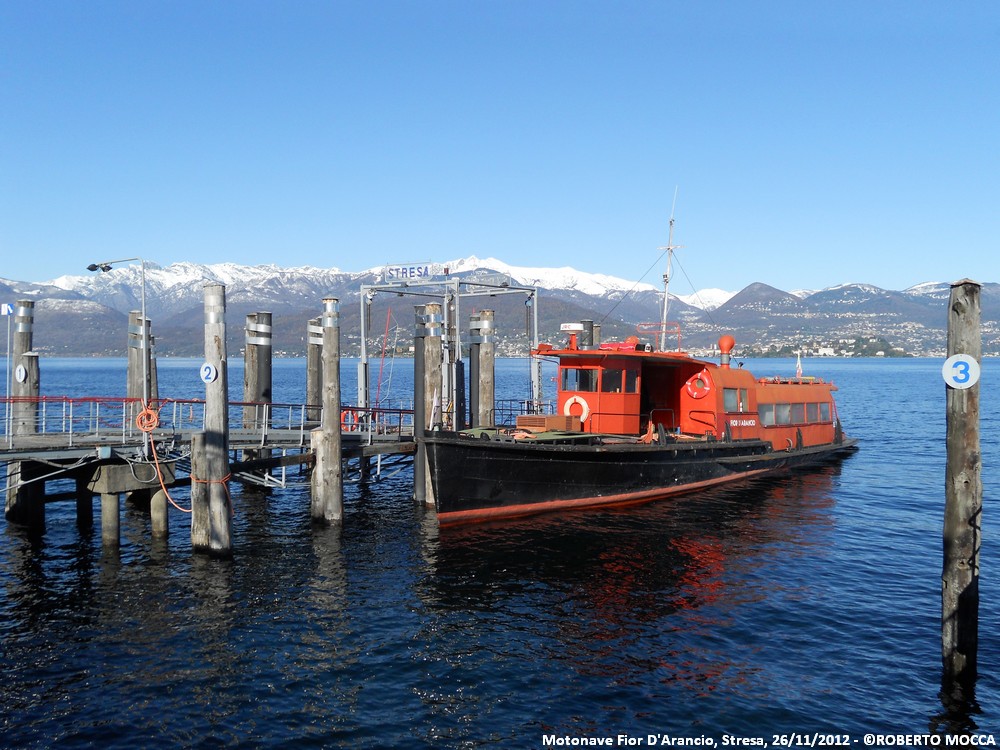Fra la fine degli anni ’70 e l’inizio degli anni ’80 la Fior d’Arancio venne riconvertita in barca attrezzi e utilizzata per coadiuvare il lavoro svolto dal battipalo Barbarossa, impiegato per la manutenzione delle strutture della Navigazione del Lago Maggiore.