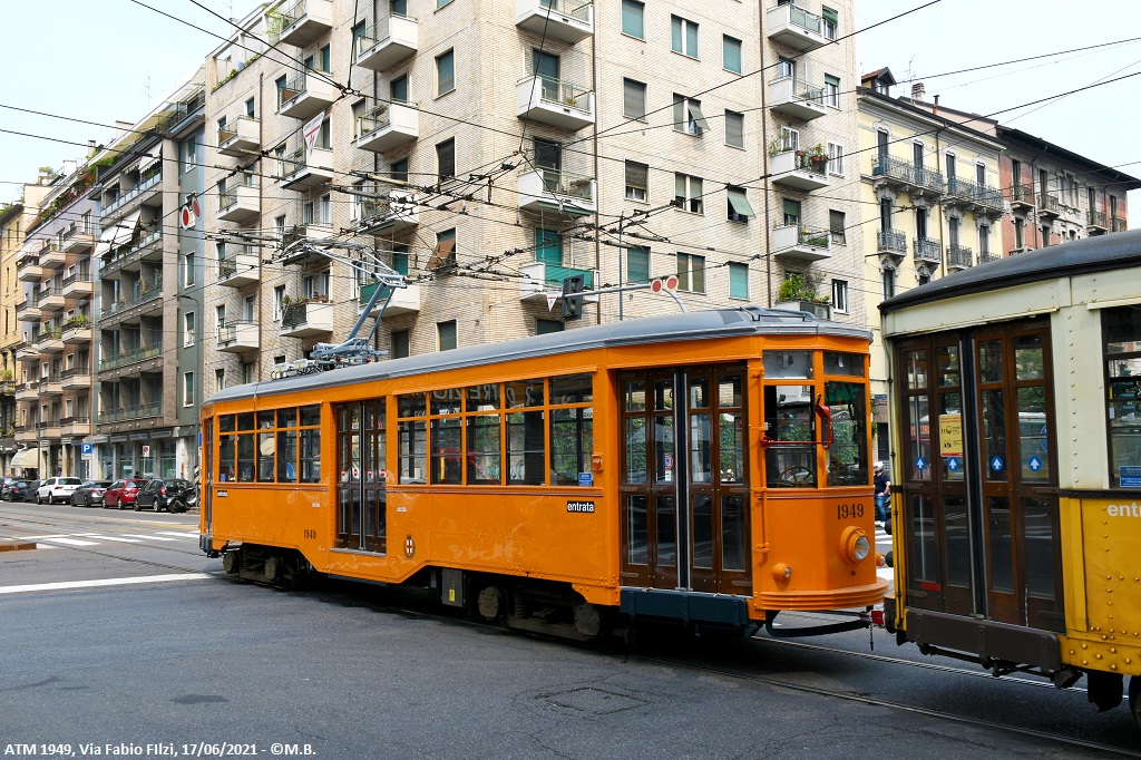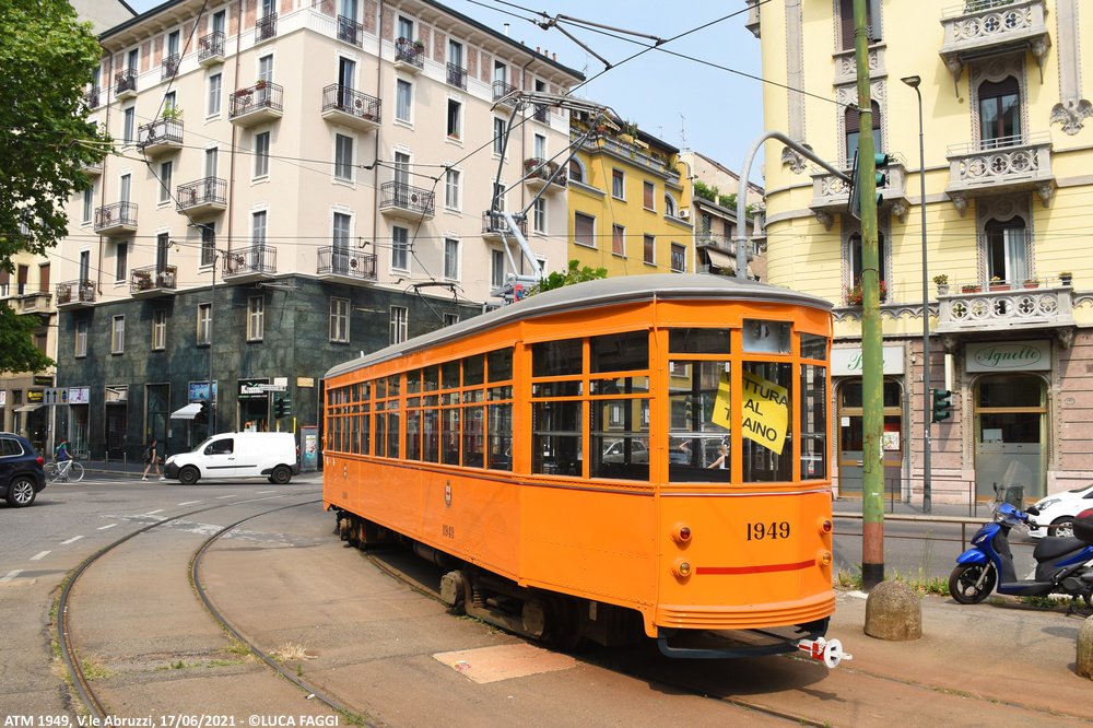 La vettura 1949 venne consegnata nel novembre 1929 dalle OEFT (Officine Elettro-Ferroviarie Tallero) ed ha regolarmente svolto il suo servizio passeggeri sino al dicembre 2000. Venne scelta per essere utilizzata come vettura per la verifica dell’ingombro creato dai tram Sirio mediante l’applicazione di alcune sagome collegate a sensori controllati da un banco a bordo della vettura.